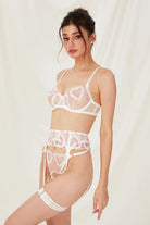✔ Sheer Floral Lingerie Set – Soft pink floral and heart embroidery on transparent mesh for a dreamy romantic lingerie look.