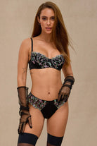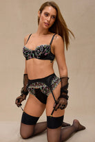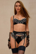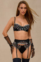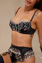 ✔ The Midnight Bloom Floral Lingerie Set captures the magic of twilight romance with delicate pastel embroidery blooming across soft black mesh. Designed with a vintage-inspired underwire balcony bra, a flared ruffled garter belt, and a matching embroidered thong, this three-piece black lingerie set brings feminine elegance, playful charm, and irresistible sensuality.